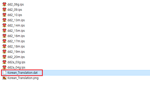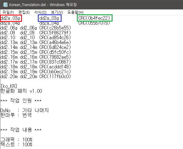 IPS 패치가 있는 폴더안에 .dat 로 된 파일을 "메모장"으로 엽니다.
