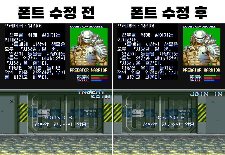 (CPS-2 실기 Alien vs Predator (940520 Japan), 한국어 패치 + 자살 배터리 제거)
